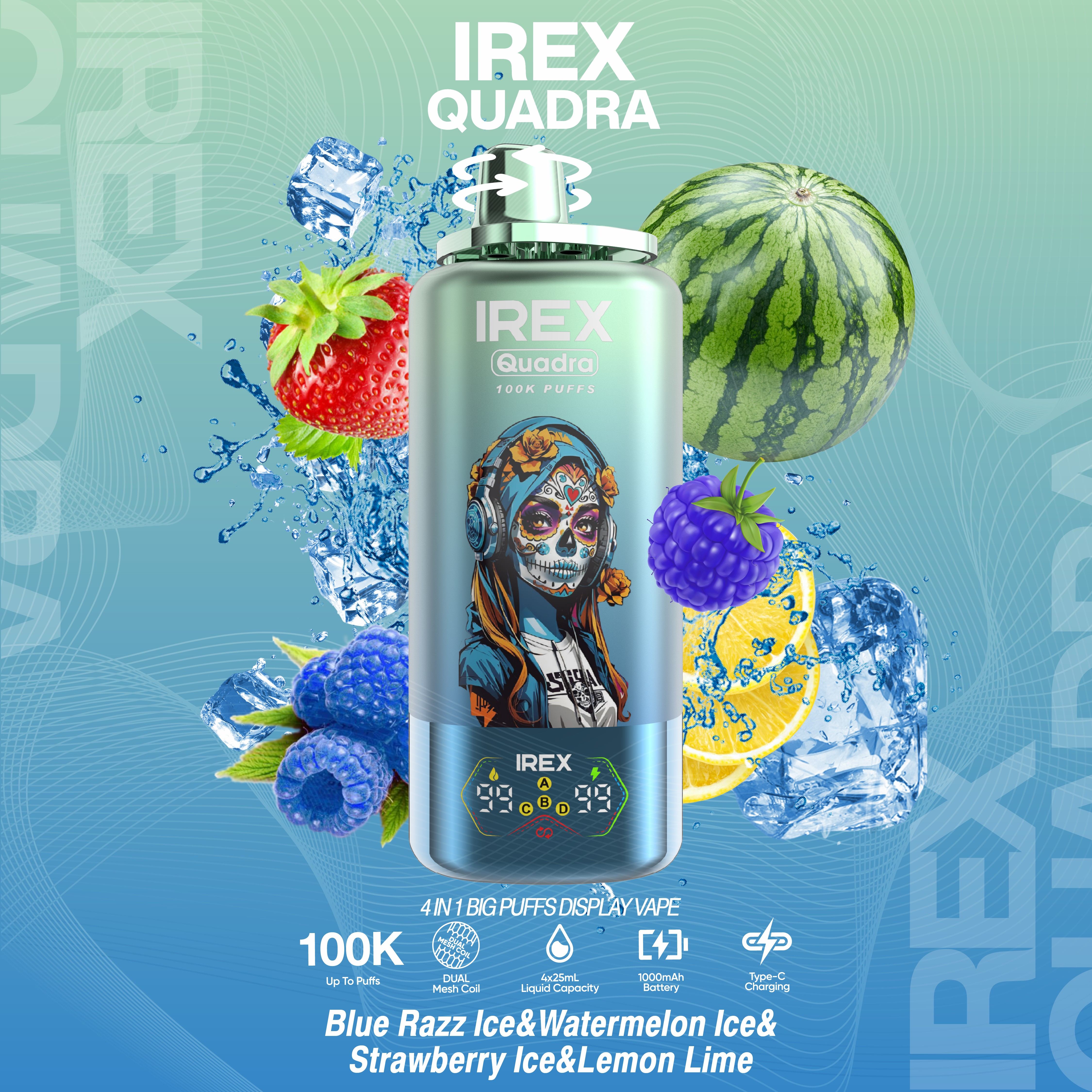 IREX QUADRA 4in1 100000 Puff Vape Sekali Pakai yang Dapat Disesuaikan dengan Layar Melengkung Cerdas